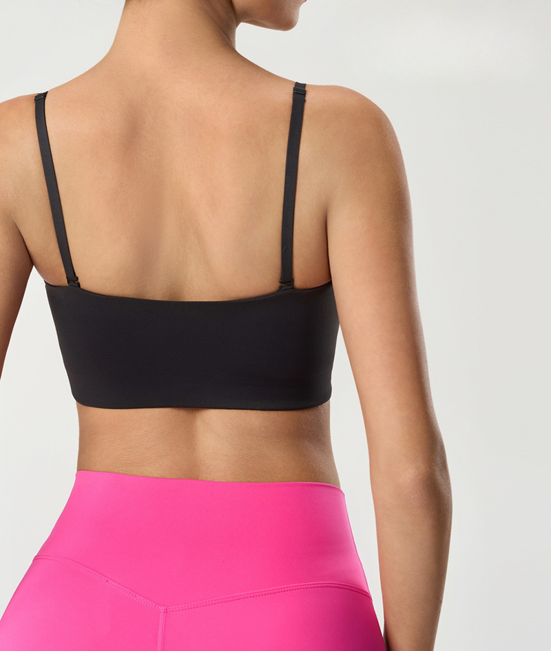 This sports bra blends medium support with a sleek, modern silhouette. Made from a soft nylon-spandex blend, it feels smooth, breathable, and flexible — adapting effortlessly to every movement. Whether you’re in the gym, on a run, or styling it for everyday wear, it keeps you secure, cool, and stylish all day long.
