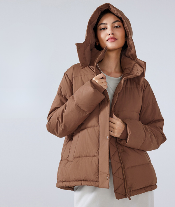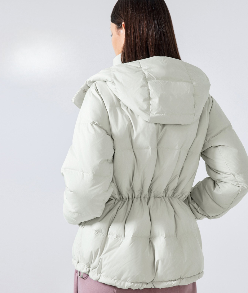 — Flattering fit with a clean, sporty silhouette — 90% gray duck down filling for superior warmth — 100% polyester shell and lining for durability and comfort — Hooded, removable design for versatile wear — Moderate thickness ideal for year-round use — Breathable, quick-drying, and easy to layer